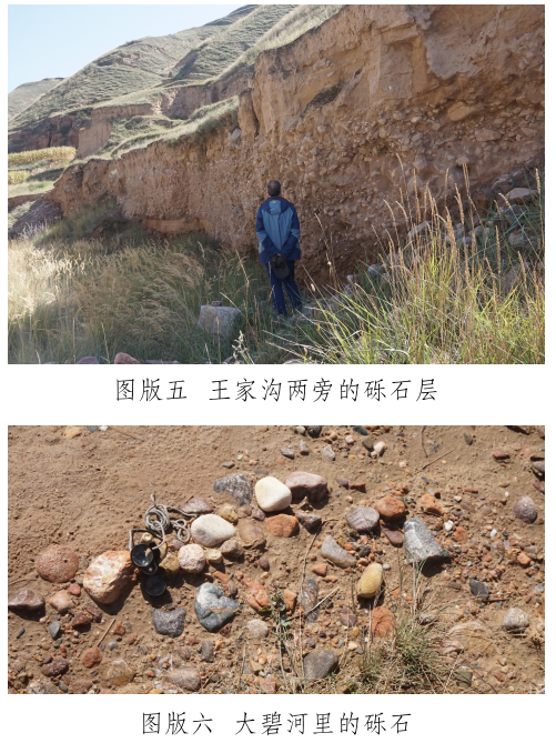 玉石山南麓有一條自東向西流過峽口鎮(zhèn)注入洮河的河——大碧河,《狄道州志》里稱為“打璧河” [12]。玉石山和山下大碧河之間有幾條溝,這些溝是上玉石山的必經(jīng)道路,也是雨水夾帶山上的石頭注入大碧河的通道。在甘肅臨洮馬家窯文化研究院李家功的引領(lǐng)下,我們對大碧河中下游和通往玉石山的三條支溝進行了較系統(tǒng)的調(diào)查,調(diào)查方法是在訪問當?shù)赜嘘P(guān)人員的基礎(chǔ)上,進行野外實地考察。大碧河連接玉石山的支溝主要有三條:第一條大溝是王家溝,是玉石山和峽口鎮(zhèn)之間的通道,大雨過后附近的村民往往會在這條溝里撿到玉石。在王家溝靠近玉石山的茨泉子村,十多戶村民都拿出自己在溝中揀到的十余件山流水玉料(圖版四)供我們觀察、檢測。玉料大小不一,大者長軸約30厘米,多呈次圓狀,均有玉皮,內(nèi)部質(zhì)地多細膩,肉眼鑒定和XRF檢測結(jié)果表明,玉石主要包括黃綠色(含草花)透閃石玉、透輝透閃石玉及透閃石大理巖,另外還有螢石料。王家溝下游匯入大碧河入口段,發(fā)育三級階地,前人使用大型機械開挖二、三級階地礫石層(圖版五),據(jù)說在其中找到較多玉料,現(xiàn)政府已叫停。在階地礫石層中我們也撿到淺黃綠色透輝透閃石大理巖及半玉化的大理巖礫石,這些礫石是玉石山玉礦的近礦圍巖。王家溝匯入大碧河,因此大碧河中也可以撿到從王家溝滾落的玉石山上的玉石和其它巖石。我們在大碧河峽口鎮(zhèn)段揀到較多直徑約3~5厘米來自玉石山的透閃石大理巖,巖石磨圓度高,成球狀或橢球狀,質(zhì)地較細膩。據(jù)當?shù)厝酥v,也有人在大碧河峽口鎮(zhèn)段撿到過小塊的玉石;第二條溝是小溝——漆家溝,位于王家溝西面,雖位于玉石山正面,但鮮有聽到在溝里撿到玉石的消息;第三條溝是王家溝東面的石景峽,距離玉石山相對較遠,其溝腦是玉石山的東延部分。《狄道州志》里載“打璧河,在州北三十里,源出石井峽,即打璧谷” [13]。這里的“石井峽”可能就是現(xiàn)在所說的“石景峽”,峽中腰有水冒出。但現(xiàn)在的大碧河不源于石景峽,而是源于洮河和渭河的分水嶺。石景峽雖可能是史籍上的打璧谷,且在峽里也撿到了透閃石大理巖礫石,但沒有發(fā)現(xiàn)玉石器和玉料。