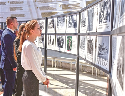 定格共同的勝利,重溫跨越時(shí)空的二戰(zhàn)記憶。“銘記歷史 開(kāi)創(chuàng)未來(lái)”——紀(jì)念中國(guó)人民抗日戰(zhàn)爭(zhēng)暨世界反法西斯戰(zhàn)爭(zhēng)勝利80周年圖片展正在白俄羅斯國(guó)立偉大衛(wèi)國(guó)戰(zhàn)爭(zhēng)歷史博物館展出。圖為觀眾在參觀展覽。新華社記者 張超群 攝