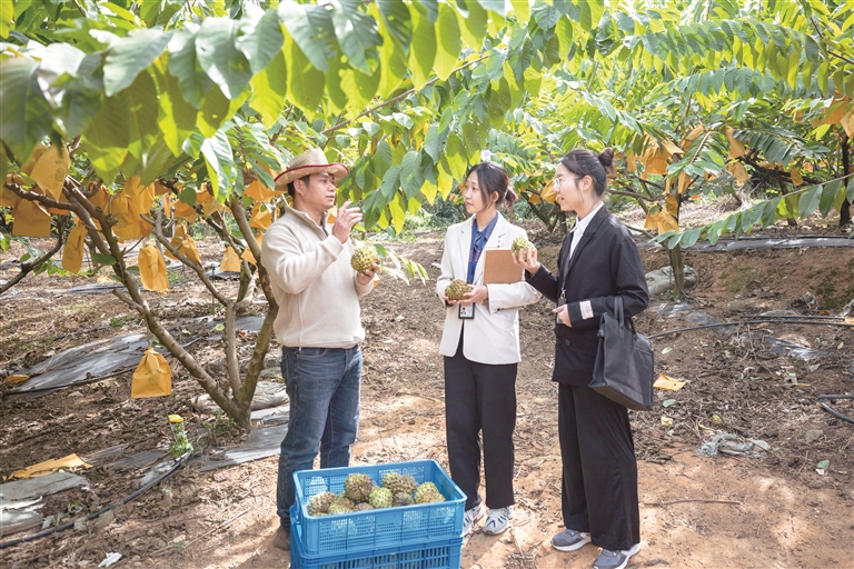 廣東省四會(huì)市紀(jì)委監(jiān)委把“百千萬(wàn)工程”作為政治監(jiān)督的“頭號(hào)工程”來抓,圍繞產(chǎn)業(yè)發(fā)展、土地資金要素保障、干部作風(fēng)等開展精準(zhǔn)監(jiān)督。圖為近日,該市紀(jì)委監(jiān)委干部到逕口鎮(zhèn)釋迦果種植基地走訪了解有關(guān)情況。胡源 攝