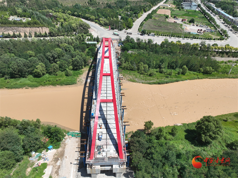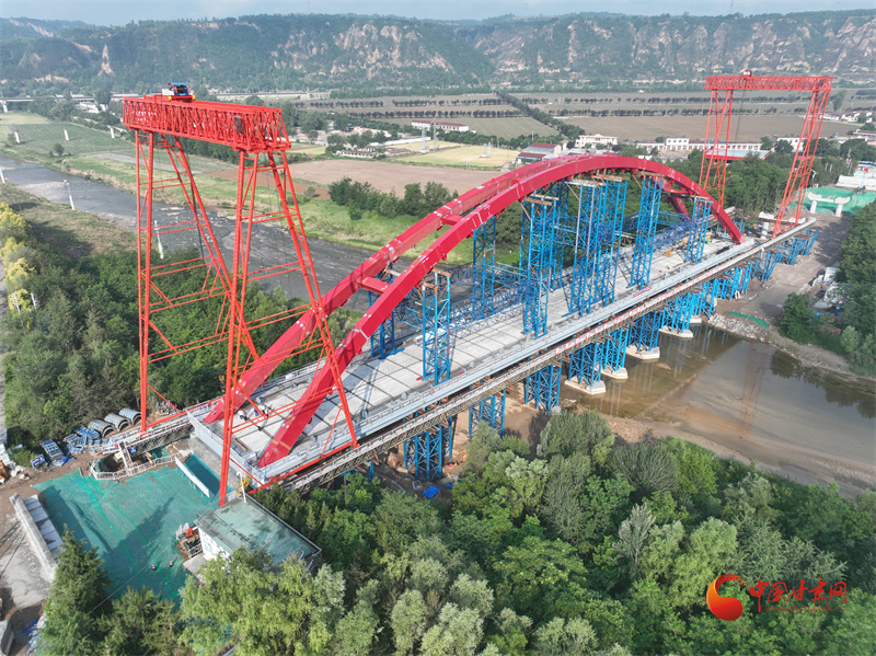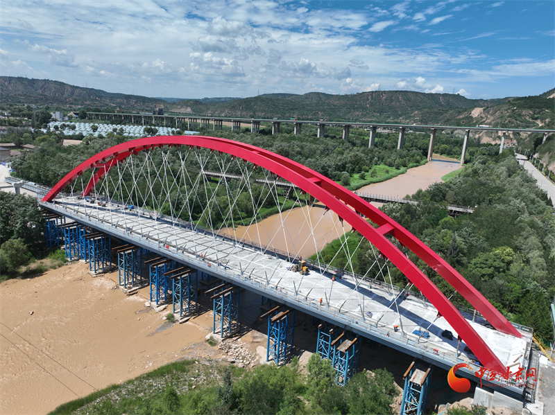 今年5月20日,長(zhǎng)慶橋主體拱肋吊裝完成,大橋主體輪廓初現(xiàn),紅橋橫跨涇河,以極高辨識(shí)度被人們關(guān)注。