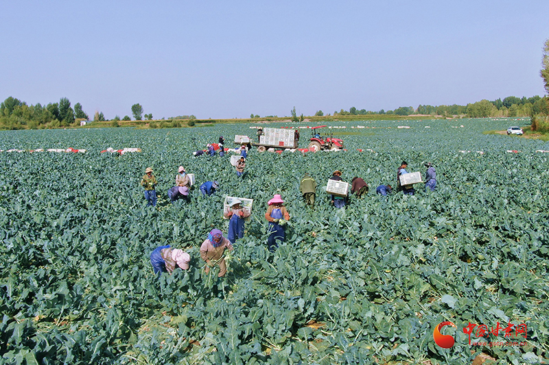 在蓼泉鎮(zhèn)絲路綠洲蔬菜分揀加工包裝配送生產(chǎn)線上,20余名工人正有序地對新鮮西藍(lán)花進行去葉、清洗、裝箱、加冰等處理。這些經(jīng)過精加工的蔬菜即將發(fā)往南方沿海城市,成為千里之外消費者餐桌上的美味。