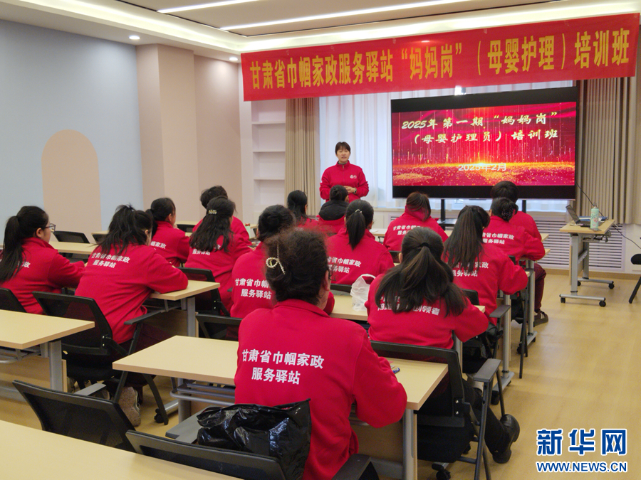 圖為蘭州市城關(guān)區(qū)酒泉路巾幗家政服務(wù)驛站舉辦母嬰護(hù)理技能培訓(xùn)班。(甘肅省婦聯(lián)供圖)
