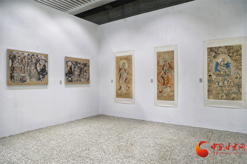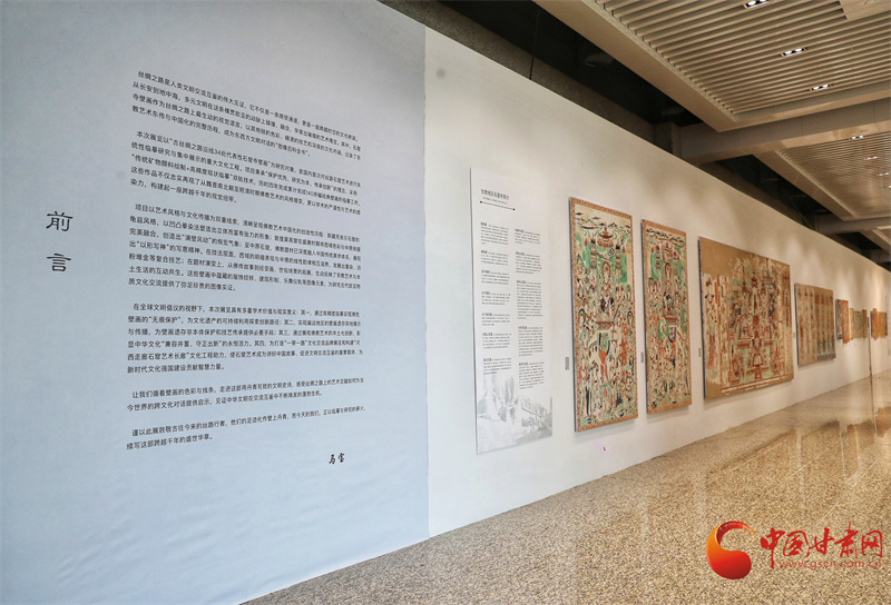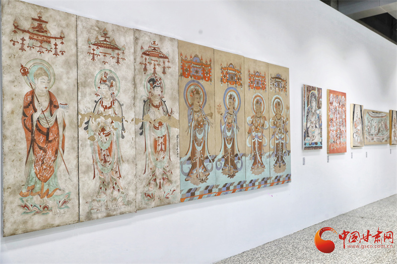 第八屆敦煌文博會(huì)“絲路華彩·盛世華章——敦煌及絲路沿線地區(qū)石窟寺壁畫藝術(shù)傳播與展示”專展,西北師范大學(xué)敦煌學(xué)院馬寶團(tuán)隊(duì)帶來(lái)了絲路沿線34個(gè)石窟寺壁畫臨摹作品,以及流失海外的壁畫精品臨摹作品,系統(tǒng)梳理了以河西走廊石窟群為代表的絲綢之路沿線石窟壁畫藝術(shù),讓全世界的觀眾可以更直接參觀熠熠生輝的絲綢之路經(jīng)典壁畫。