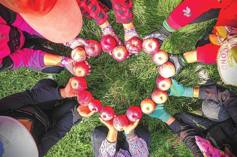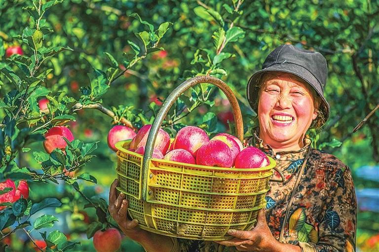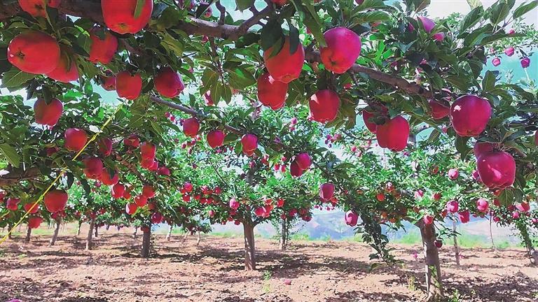 秋日平?jīng)?,天高云淡。百萬畝果園里,紅果壓枝,甜香四溢。