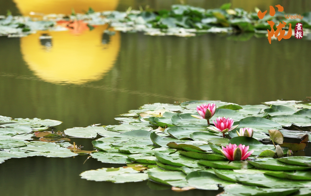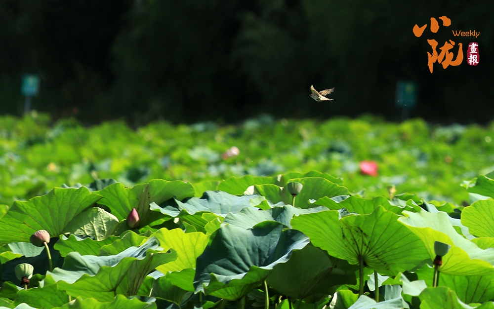 低頭凝望荷塘,荷葉像一把把撐開的綠傘鋪展在水面上,遮住了秋日的熱氣,給大地帶來一片清涼。荷花、睡蓮點綴其中,雀鳥在水天之間嬉戲盤旋,時而點水,時而落于荷花之上,于遠處觀賞這份和諧景致,真是別有一番趣味。