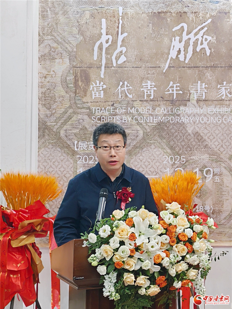 12月14日上午,“帖脈溯望——當(dāng)代青年書(shū)家行草作品展”在甘肅美術(shù)館開(kāi)幕。中國(guó)書(shū)法家協(xié)會(huì)理事、甘肅省文聯(lián)黨組成員、副主席陳新長(zhǎng)在開(kāi)幕式致辭中表示,河北美術(shù)學(xué)院七位青年教師的作品展,以九零后的視角重新解讀二王法脈、唐草風(fēng)神與晚明意趣,作品既有晉唐筆法的精微細(xì)膩,又有當(dāng)代審美的開(kāi)闊格局。