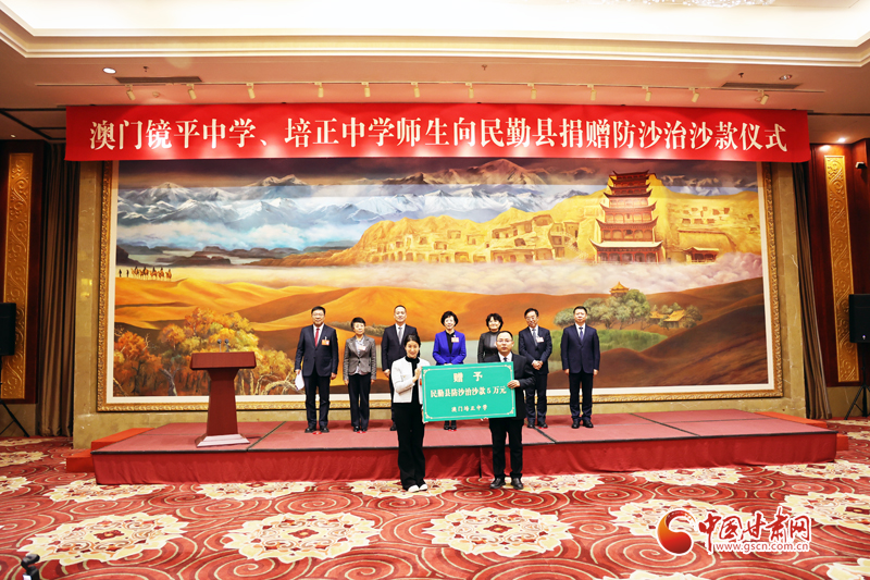 中國(guó)甘肅網(wǎng)1月27日訊(西北角·中國(guó)甘肅網(wǎng)記者 張慧雅 宋芳科 孫珩力 黃宛悠)1月27日,澳門鏡平中學(xué)與培正中學(xué)師生向甘肅民勤縣捐贈(zèng)防沙治沙款儀式在蘭州舉行。此次兩所學(xué)校聯(lián)合捐贈(zèng)防沙治沙款共20.1萬(wàn)元,延續(xù)了隴澳共護(hù)綠洲的愛心接力。