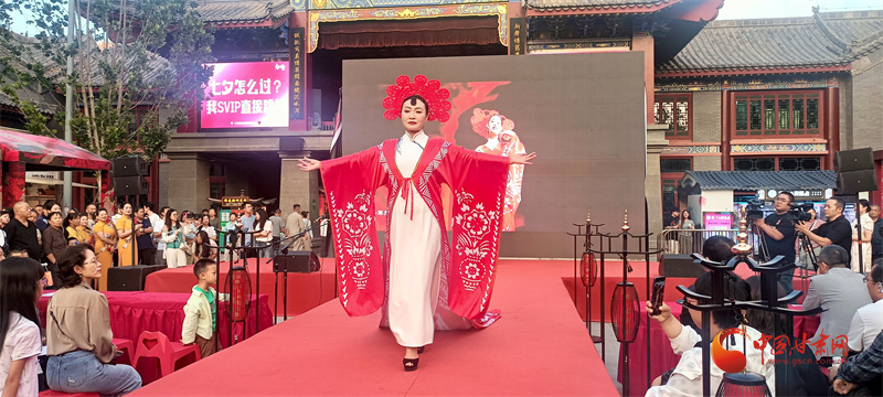 街舞《愛的節(jié)拍》則將現(xiàn)代元素與七夕的浪漫相結(jié)合,活力四射的舞蹈點(diǎn)燃了現(xiàn)場氣氛。沉浸式旗袍大秀中,模特們身著典雅旗袍,邁著優(yōu)雅步伐,展示了東方女性的柔美與魅力,贏得陣陣掌聲。鼓子表演《蘭州眉戶賣水》更是讓觀眾領(lǐng)略到了地方特色文化的魅力,其獨(dú)特的唱腔和韻味令人陶醉。
