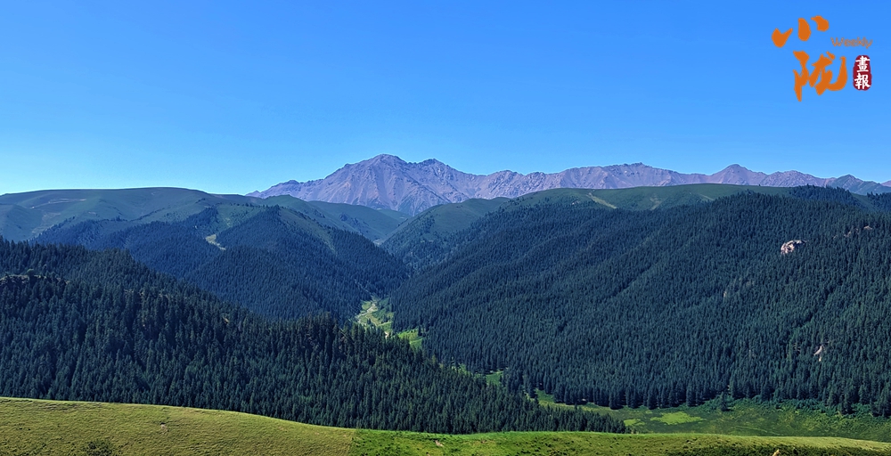 天空湛藍如洗,蒼莽翠綠的原始森林和高聳挺拔的祁連山脈相互輝映,構(gòu)成一幅和諧壯麗的生態(tài)畫卷。祁連山是一座對河西走廊舉足輕重的山,從祁連山發(fā)源的河流滋養(yǎng)著河西走廊的綠洲。
