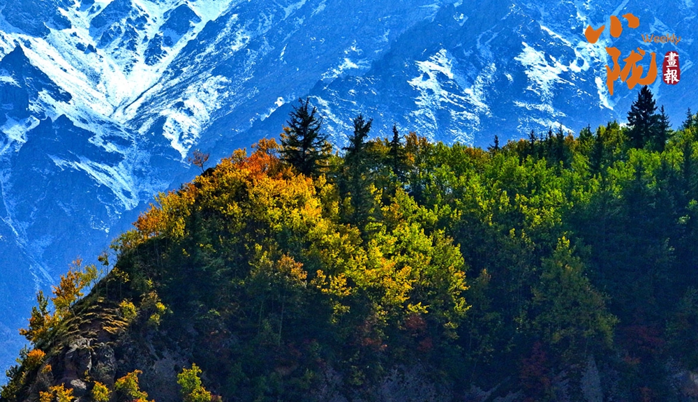 秋風(fēng)吹過,祁連山的原始森林悄然換裝。黃綠交織,紅金點染,仿佛大自然執(zhí)筆揮灑的油畫,靜謐而熱烈。尤其是在陽光的照耀下,與遠處的雪山和湛藍的天空、潔白的云朵,形成鮮明的對比。