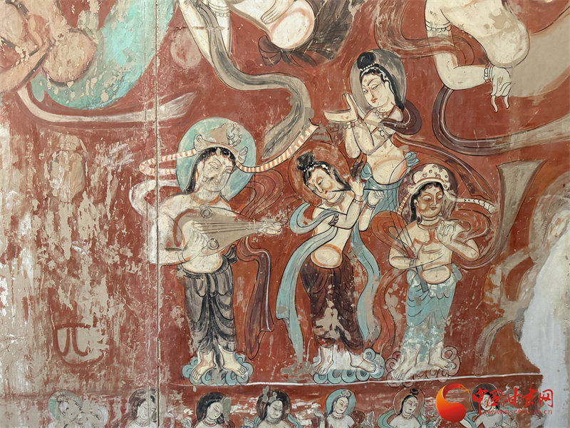 “轉(zhuǎn)眸流眄綻笑櫻,柔曼恬雅拂妙韻。樂如清泉沁心肺,舞似天仙乘飛云。”敦煌莫高窟第112窟“反彈樂舞”壁畫靜候千年默默講述一段敦煌故事。