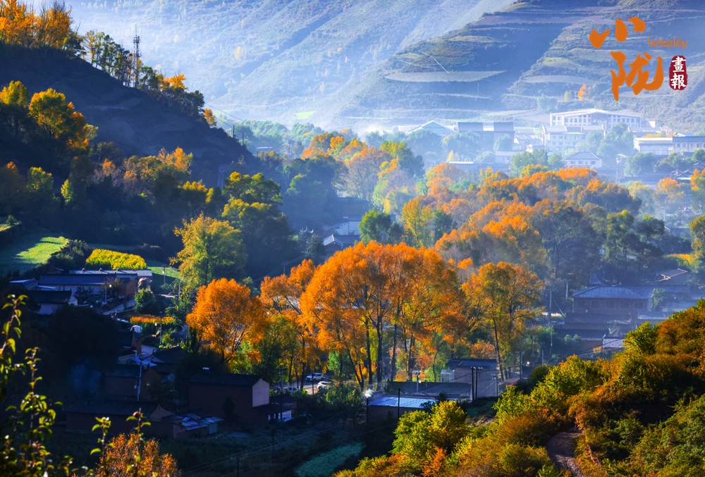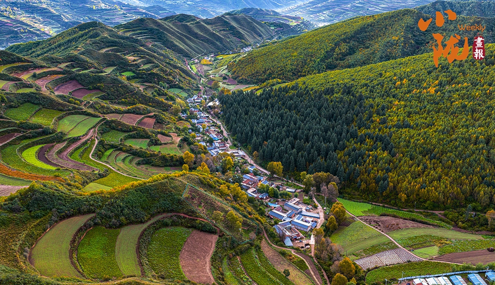 秋末初冬,多彩秋色映照著美麗的臨潭。五彩斑斕的梯田縱橫交錯、順山而變,宛如一條條彩帶,在山間飛舞。村落點(diǎn)綴其間、古樸自然,田園生活詩意盎然。