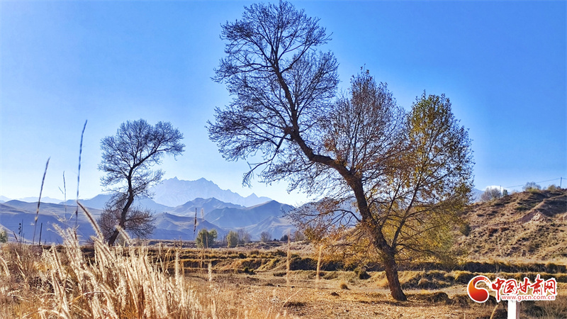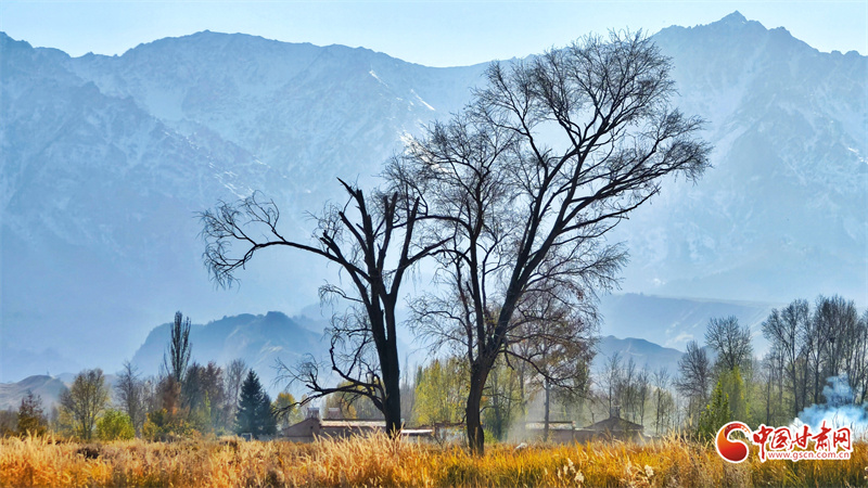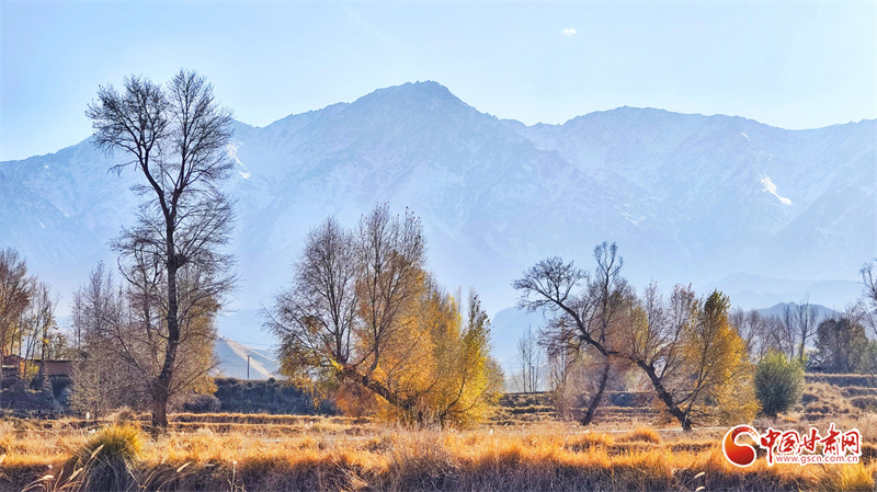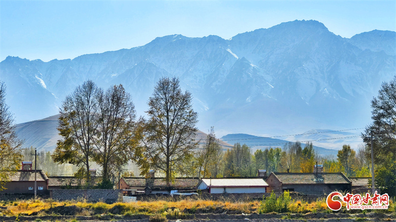 初冬時(shí)節(jié),張掖市民樂縣南古鎮(zhèn)柳谷村景色宜人。巍峨的祁連山脈連綿起伏,山腳下,萬畝良田阡陌縱橫,黃綠相間的樹木點(diǎn)綴其間,為大地暈染出豐富的色彩層次,盡顯祁連山下冬日的獨(dú)特韻味。