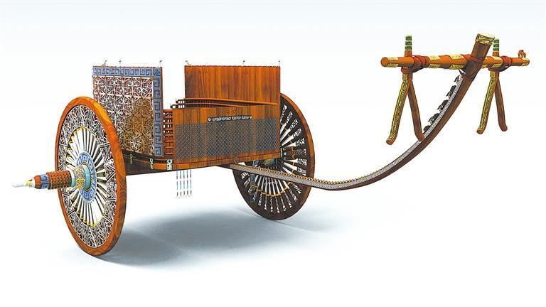 馬家塬西戎墓葬出土的戰(zhàn)國馬車復(fù)原效果圖。