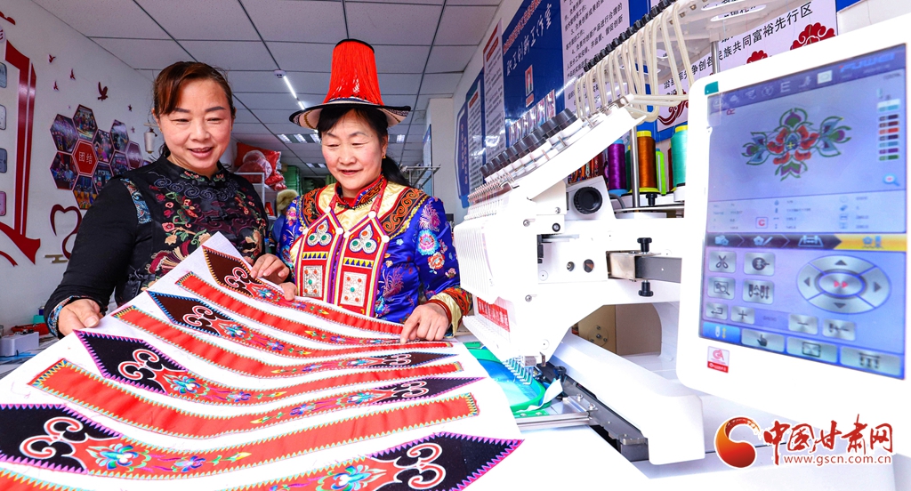 隨著機(jī)械臂精準(zhǔn)移動、數(shù)字設(shè)備高速運(yùn)行,過去,手工完成一套裕固族服裝需耗時近一年;如今依托智能機(jī)器與手工協(xié)作的模式,僅一周即可制成,且圖案新穎、繡工勻整。裕固族、藏族、蒙古族等民族服裝的制作成本也降至原來的三分之一。